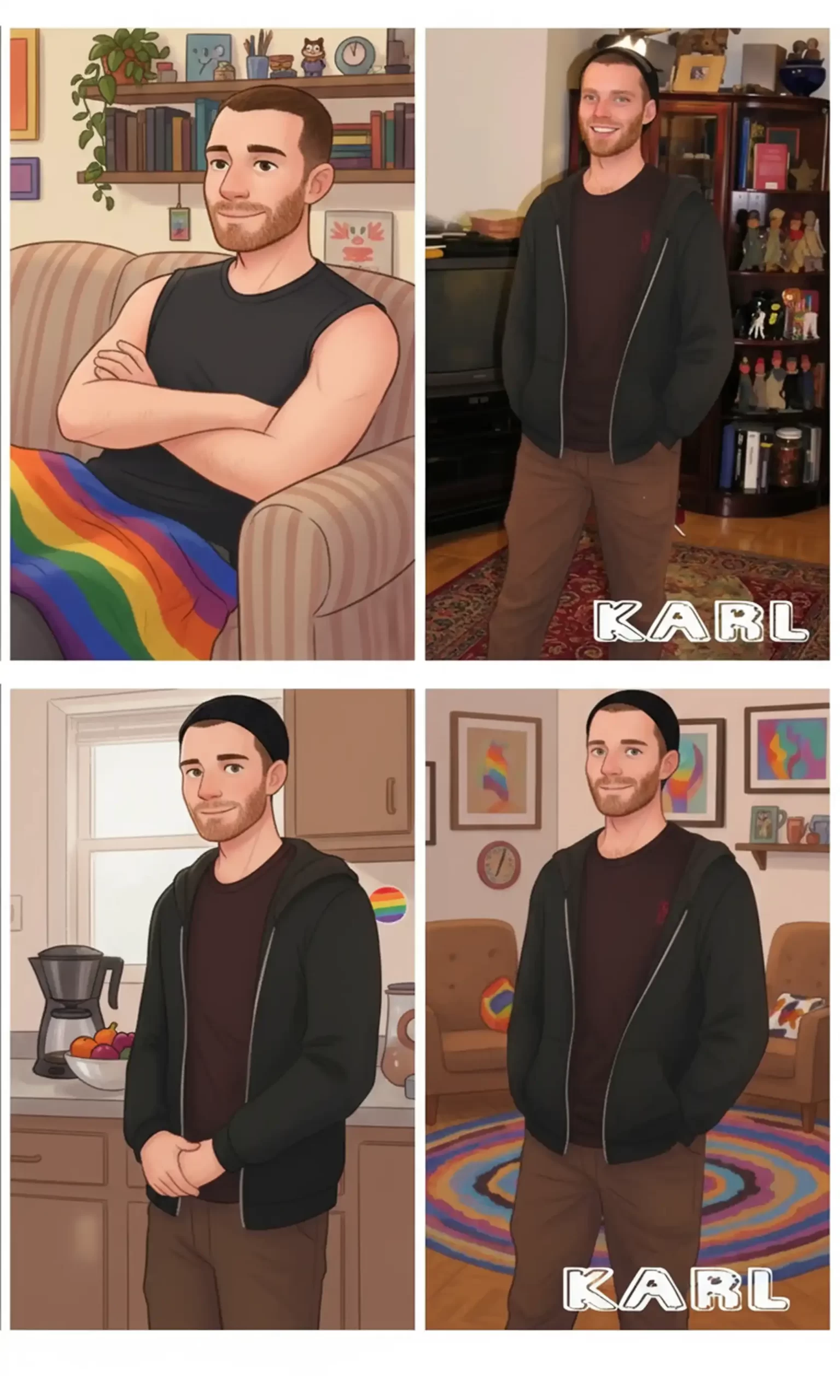 Karl identifies as straight but appeared on a website for gay men. He doesn’t seem to have any issues and seemed to enjoy the photo shoot. He was a bike messenger in NYC and delivered packages all over the city. He was also in a band that played in a few clubs in the East Village.