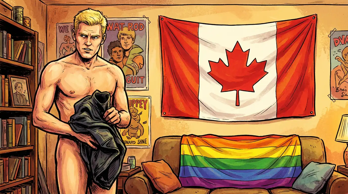 One of the earliest live cam models. Seeing as no one had high speed internet in their homes models would have to go to a studio to perform. Toronto Canada had one of the first studios dedicated to live cam models. They had straight gay and trans performers. The rooms looked very dark and dreary which is why Bauer put up a Canadian flag in the background.