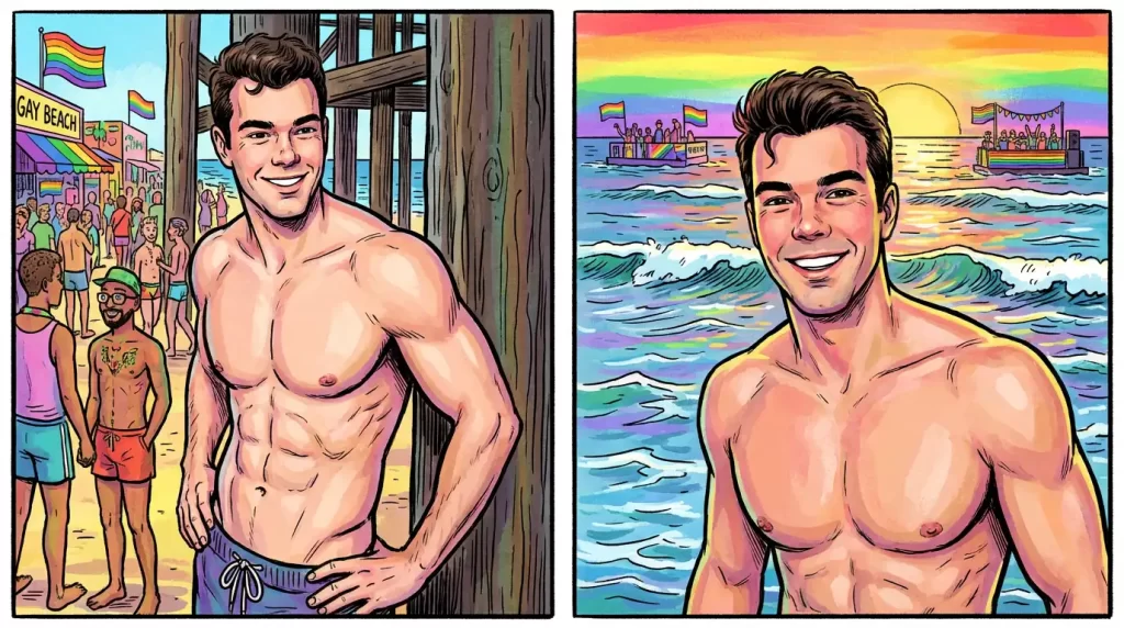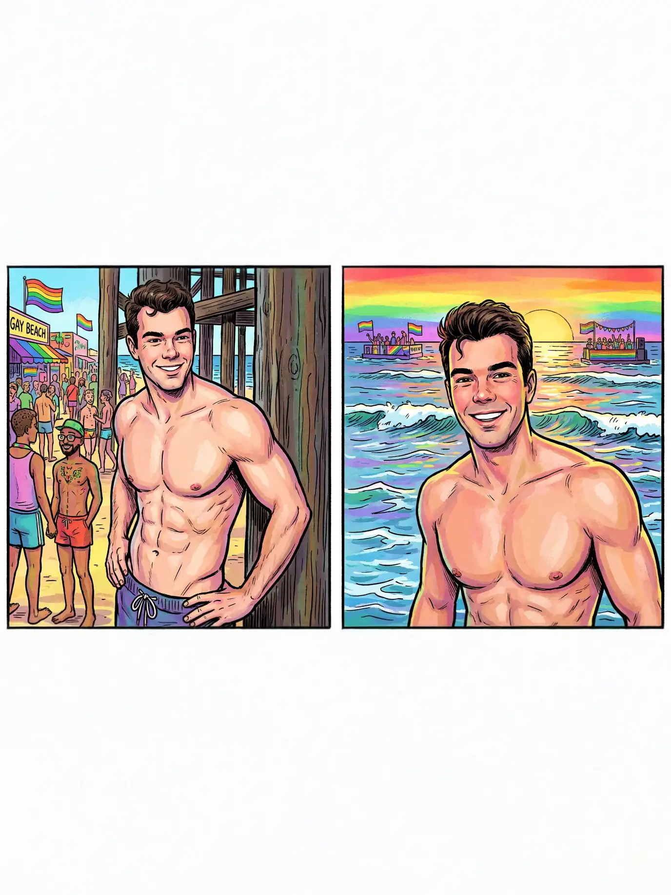 No name or description for this very cute model. He has a very lean body with nice teeth and everything else. He’s posing under the dock and by the beach giving him a surfer dude look.