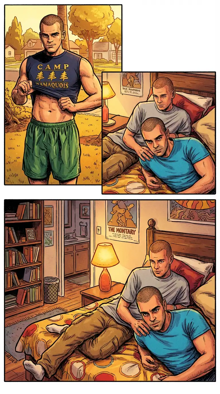 Looking kinda bored as they take directions from the photographer. Antonio was described as the college stud who came back. Rex also came back – so I am guessing that just met for the first time when these pictures were taken.