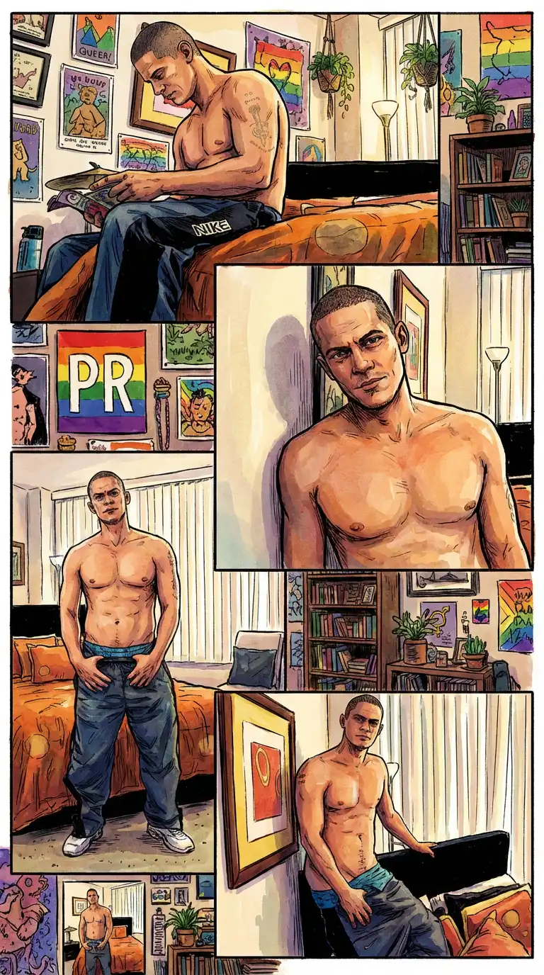 Reese appears to be giving Braden’s muscle body a massage in this photo set. They appear as a couple although Reese claims to be straight. Years later Reese would come out of retirement to appear in my queer photography.