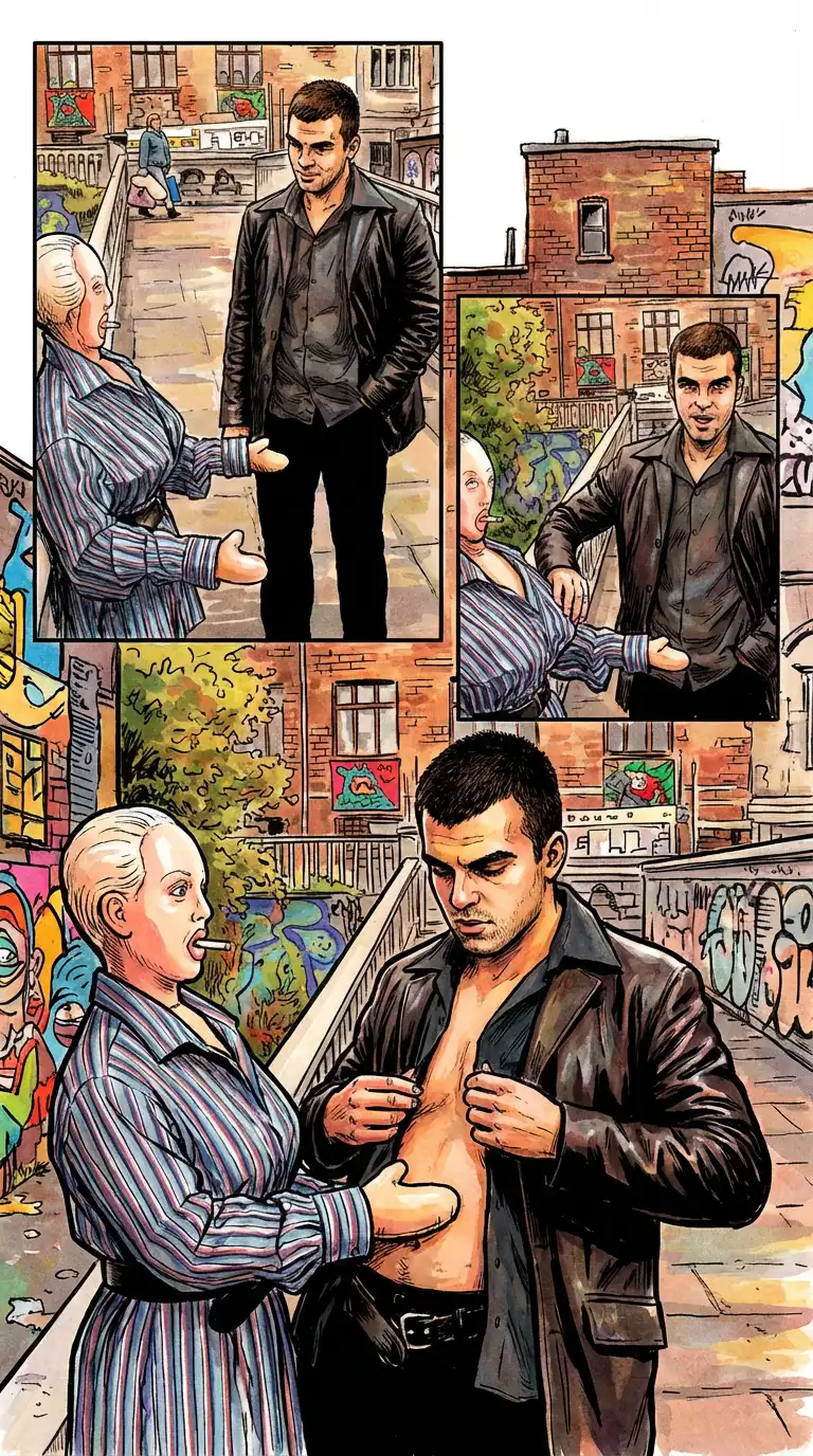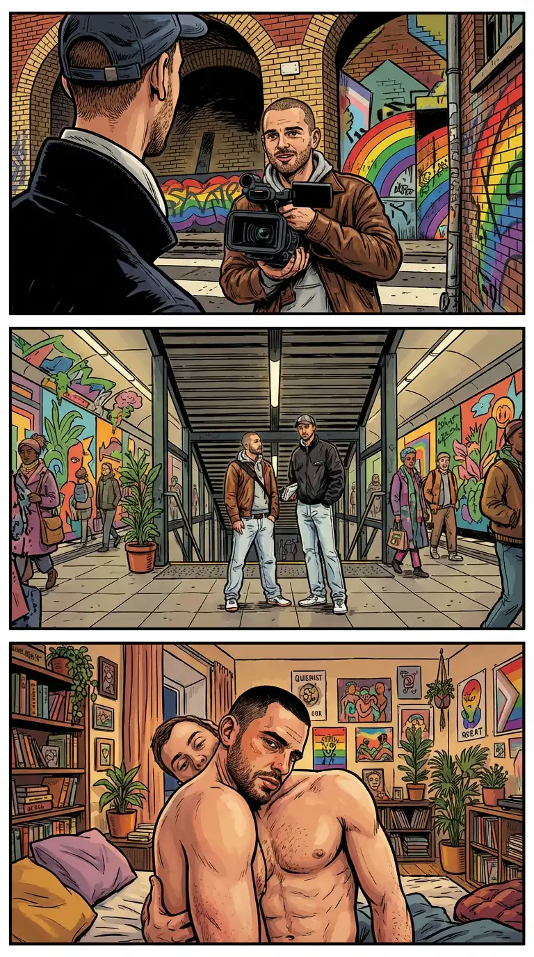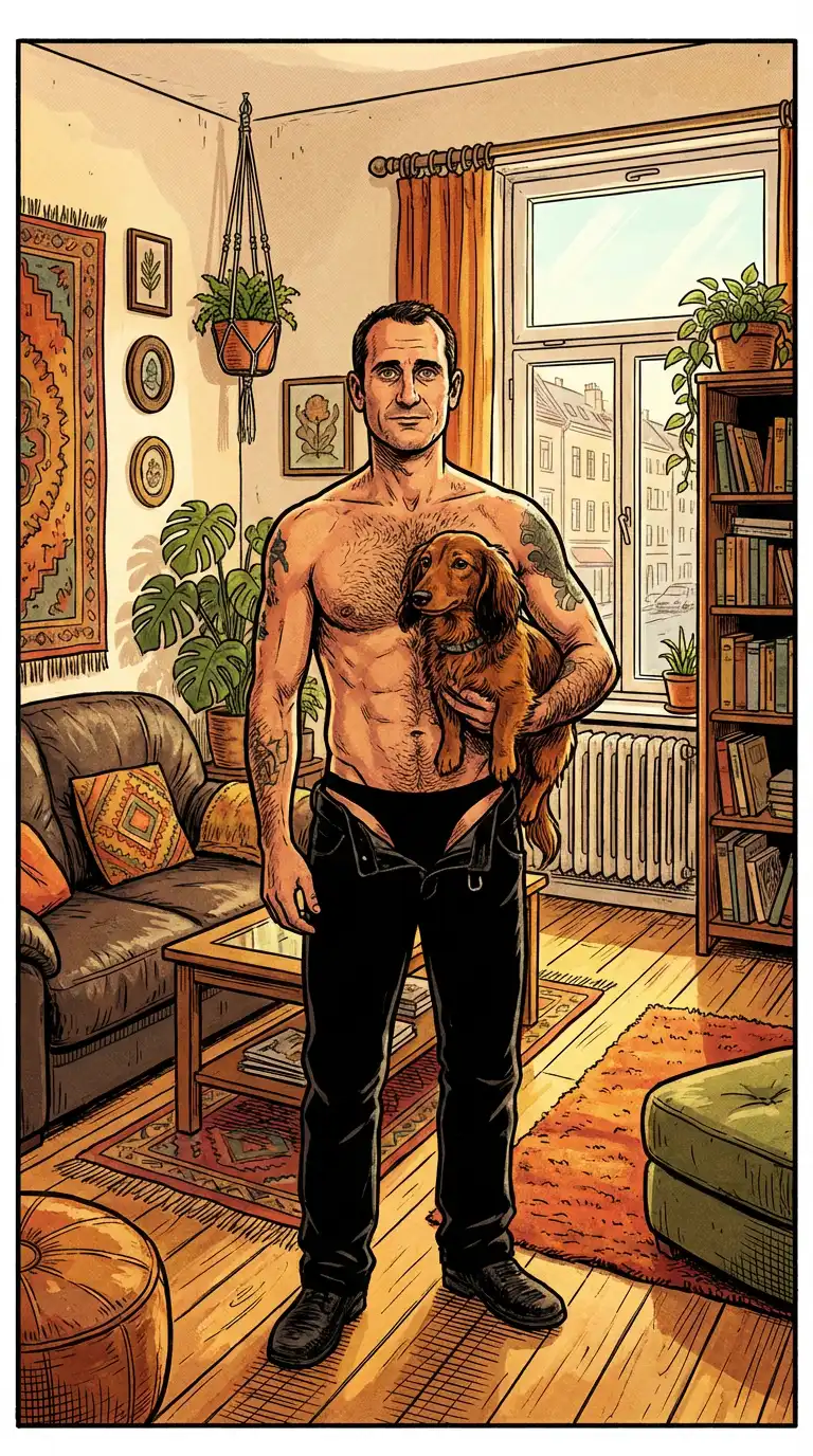 From the district of Wedding in Berlin Ivan is 30 years old. Nothing else for a description about him. They took some nice photos of Ivan about the city. The pose with him with a dog is very cute. He takes off his shirt eventually and shows off his arm tattoo.