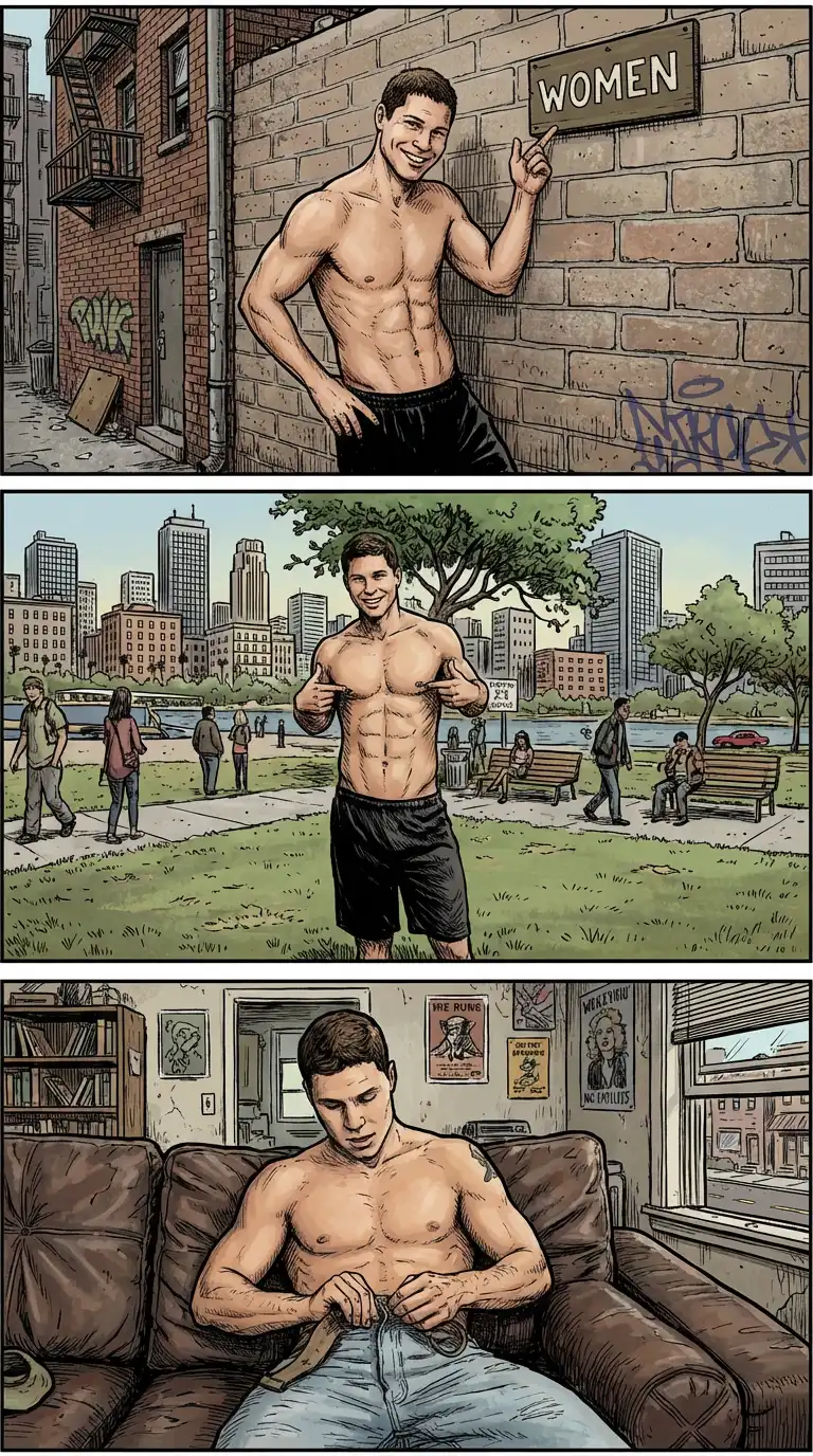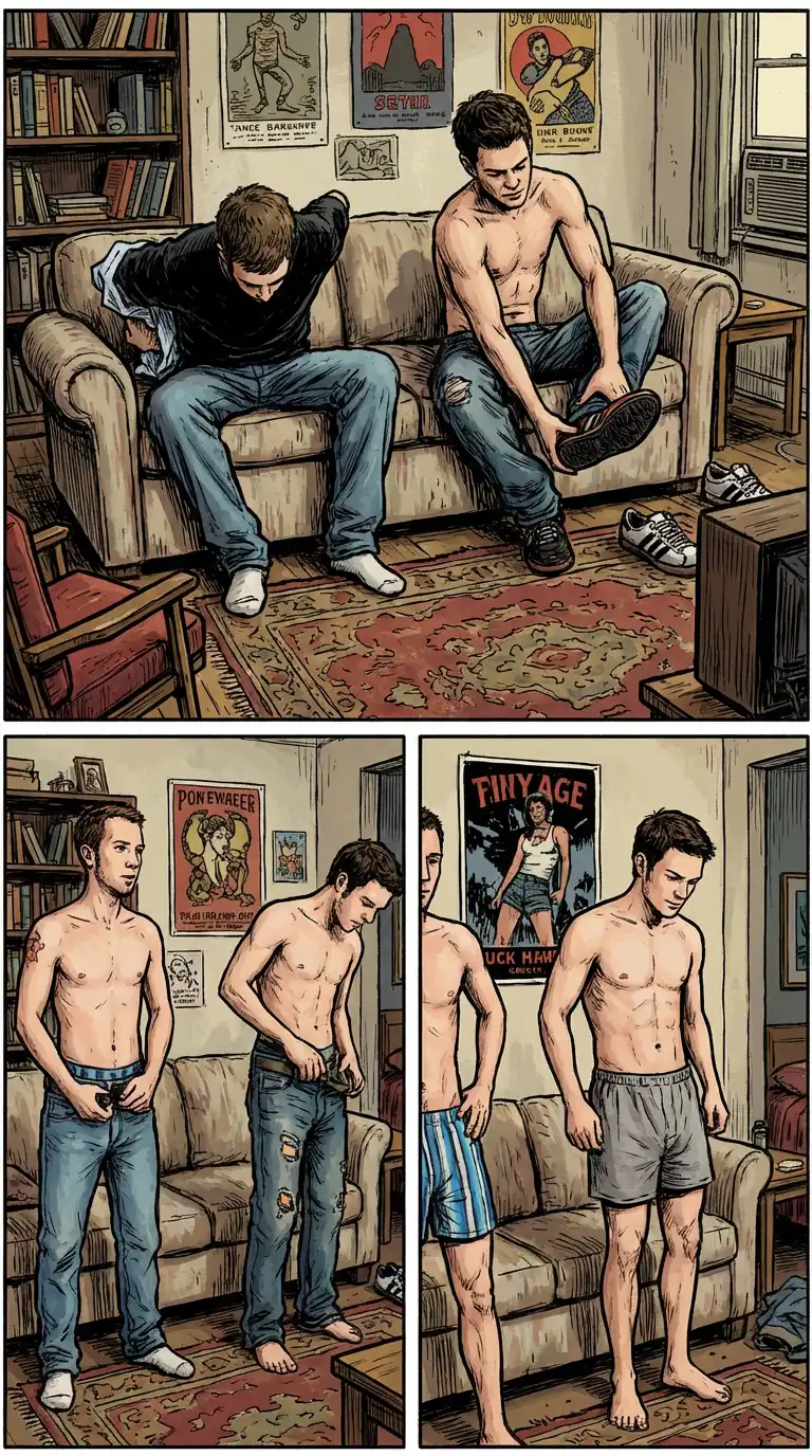 Queer models Wes and Maverick take off their shirt awkwardly together for another straight guys go queer episode.