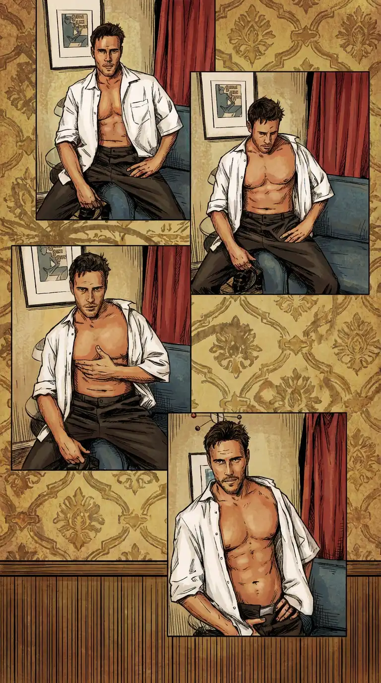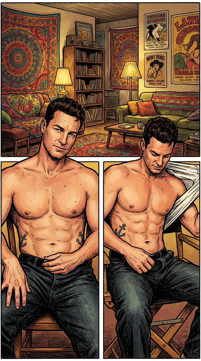 Twitching his leg during the photos shoot was the indication that Clyde was nervous. After he took off his shirt he lost some of that nervousness. They were happy to see him without a shirt and showing off his body.