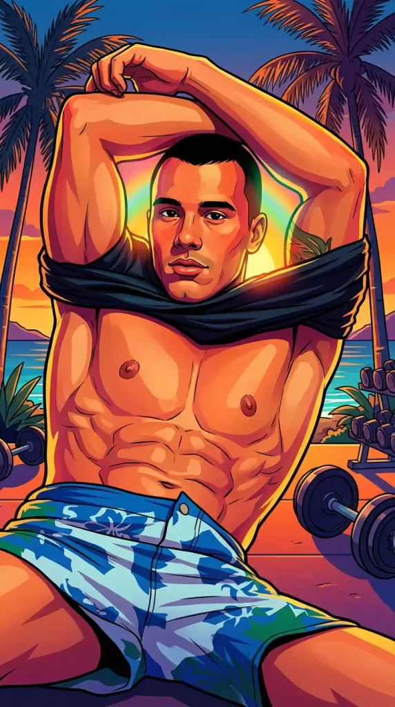 After Dirk showed up for the interview he exposed a lean body and “flawless set of abs and a perfectly defined chest. “