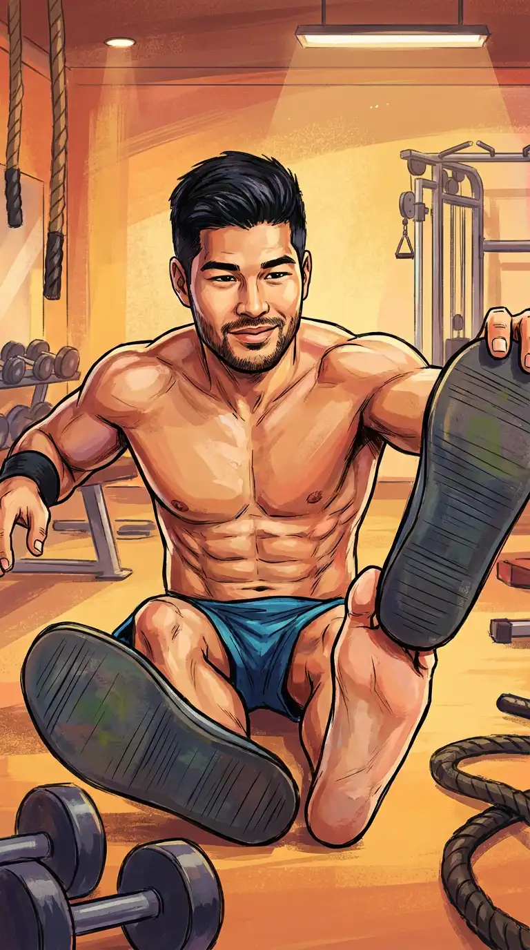 Looks like Shan is a size 11 foot model. The photographer seems to admire Shan not only for his smile but for his feet. He stops by every once in awhile to show them off. Notice the flip flops !