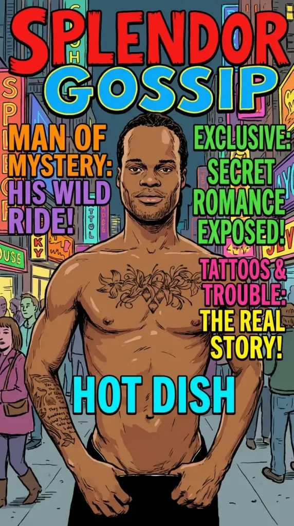 Shirtless and showing off his chest tattoo, this ebony beefcake has a lot to be proud about.
