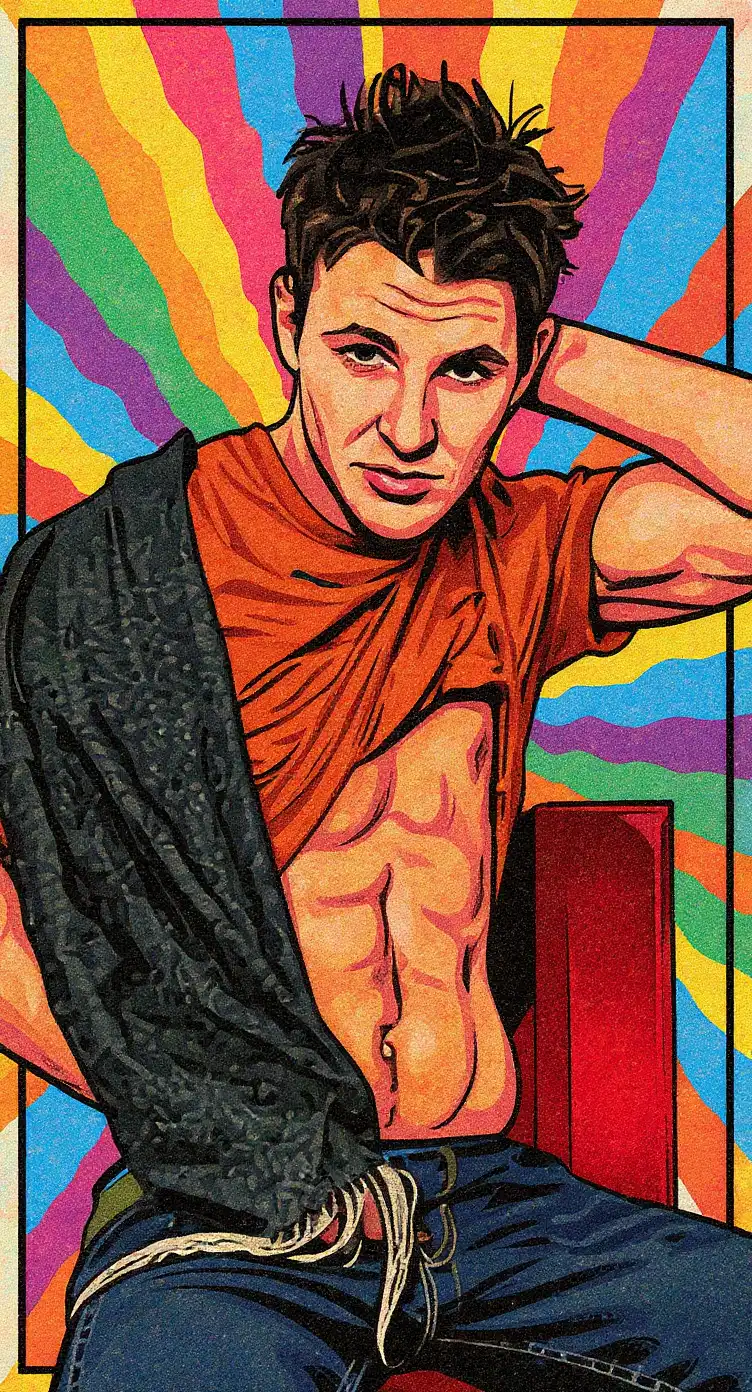Neat how the AI turned him into a blonde. He still muscled though and without a shirt.