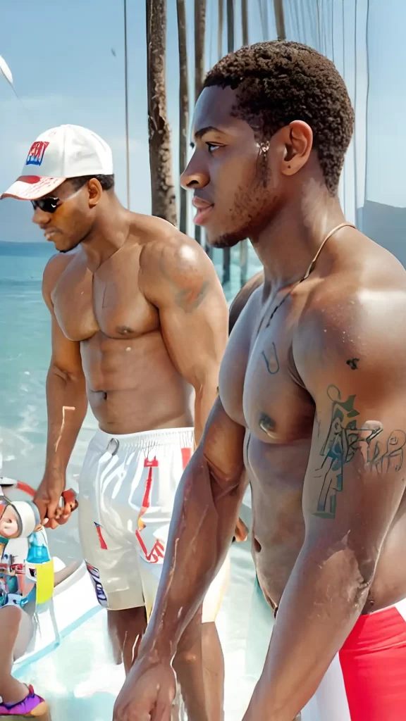 The sun was high, casting a golden glow over the outdoor gym as ebony beekcakes DeAndre and Malik clanked their weights together. Sweat glistened on their skin, each rep a testament to their discipline and drive.