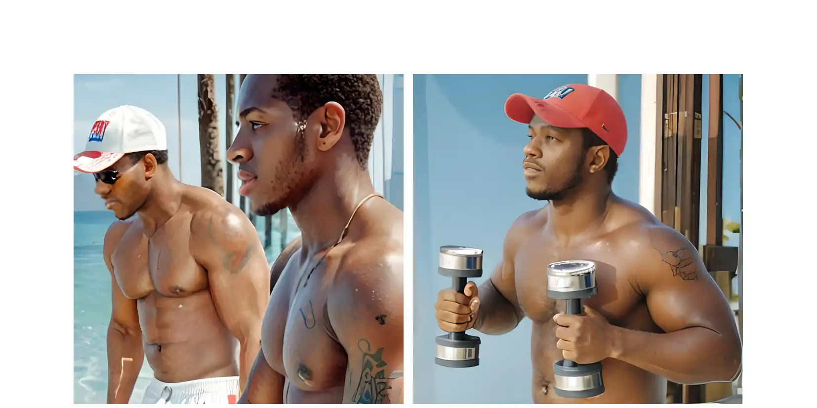 The sun was high, casting a golden glow over the outdoor gym as ebony beekcakes DeAndre and Malik clanked their weights together. Sweat glistened on their skin, each rep a testament to their discipline and drive.