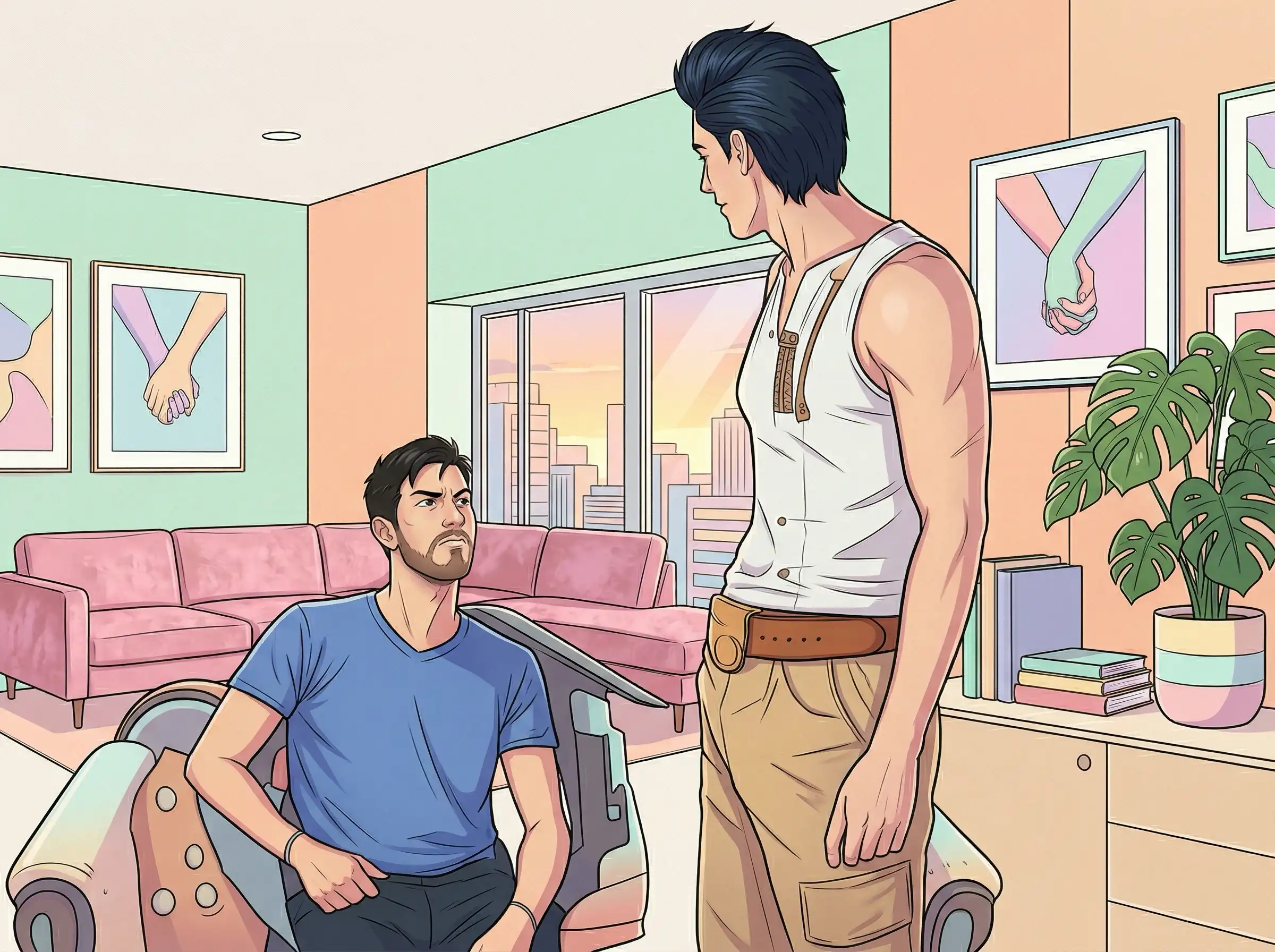 Jay sometimes forgets to close the curtains before he heads downstairs. His neighbours probably don’t mind the view.