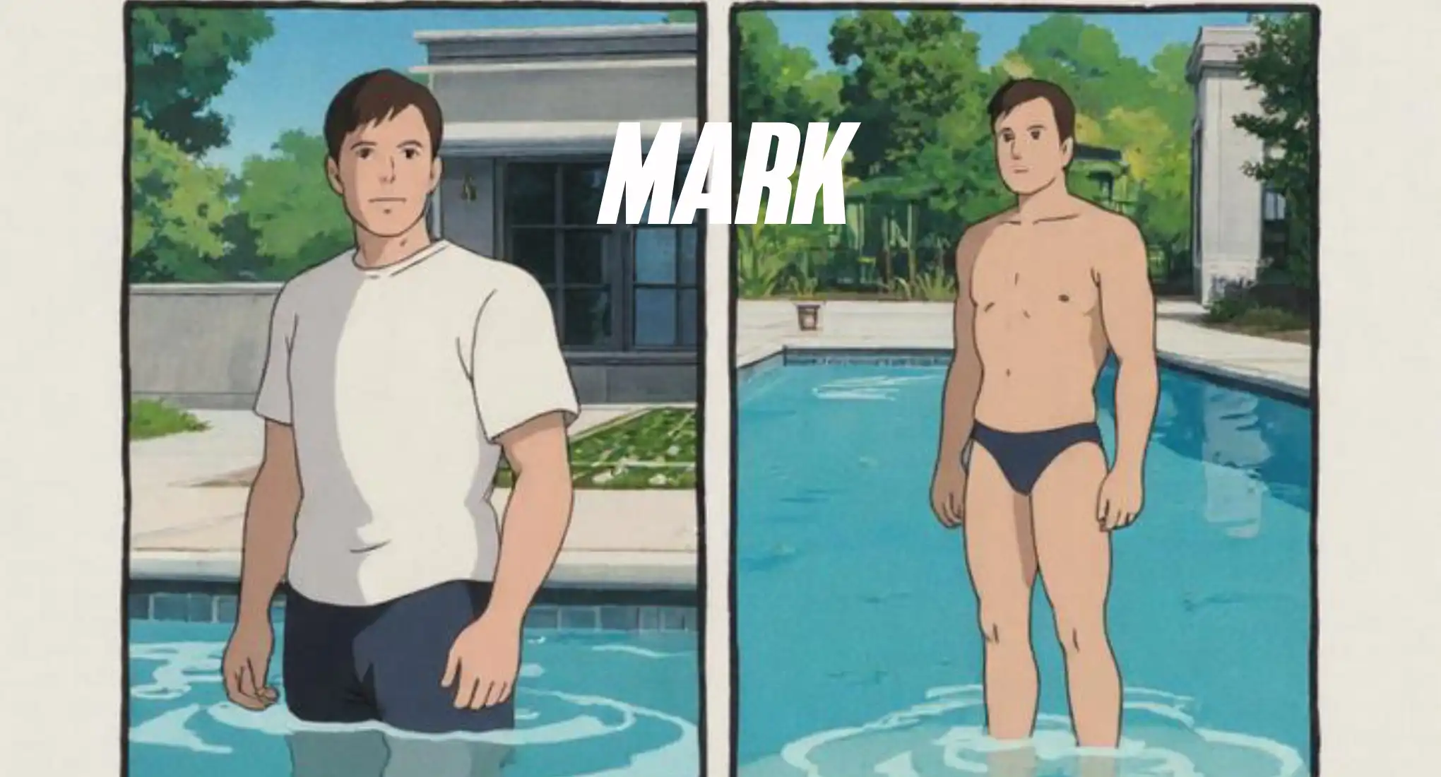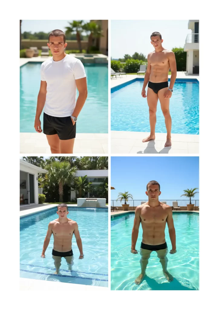 Mark lounged by the pool in a crisp white tee and black trunks, the midday sun tracing every plane of his body. Palm fronds swayed overhead as he surveyed the water’s mirror, catching glimpses of himself in the reflections. It was easy to forget the world beyond the manicured deck, yet Mark couldn’t shake the buzz of notifications on his phone. Every ping was another message from a fan—mostly men—who adored his effortless cool and sculpted silhouette.
