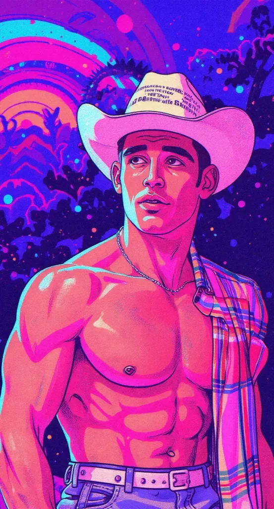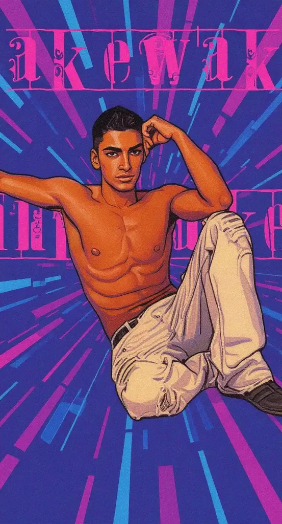 Shirtless in shimmer, he’s half mirage, half masterpiece. Is it the glitter, the gaze, or the groove? Answer: yes.