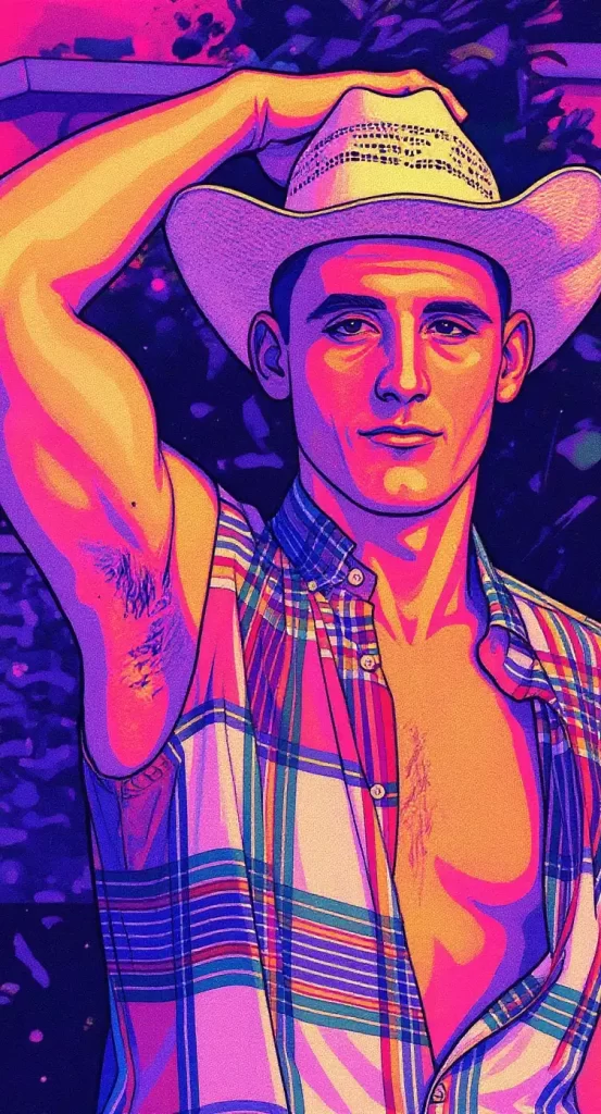 He’s got vintage vibes and modern thirst. Think 80s heartthrob meets queer icon. You’d swipe right, left, and diagonally if you could.