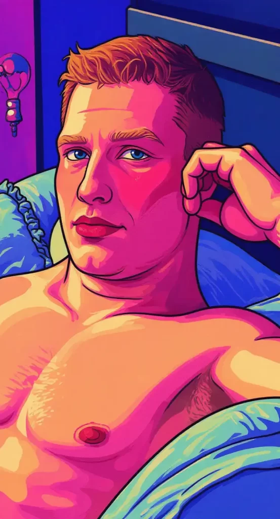 He’s not just glowing—he’s radiating. Midnight city lights, abs for days, and a wink that says “I know you’re staring.” Guilty? Good. Stay awhile.