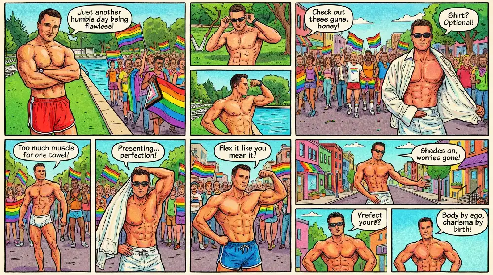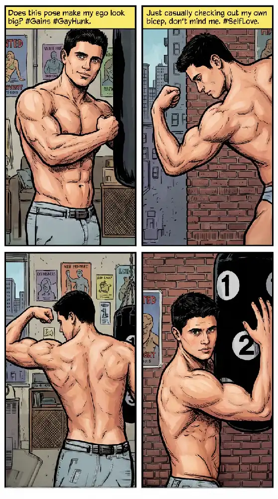 “Does this pose make my ego look big? #Gains #GayHunk”