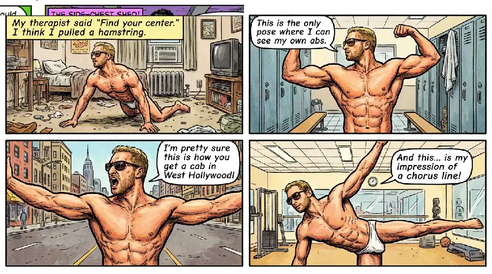 “My therapist said ‘Find your center.’ I think I pulled a hamstring.”
