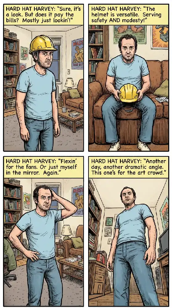 HARD HAT HARVEY: “Sure, it’s a look. But does it pay the bills? Mostly just lookin’!”