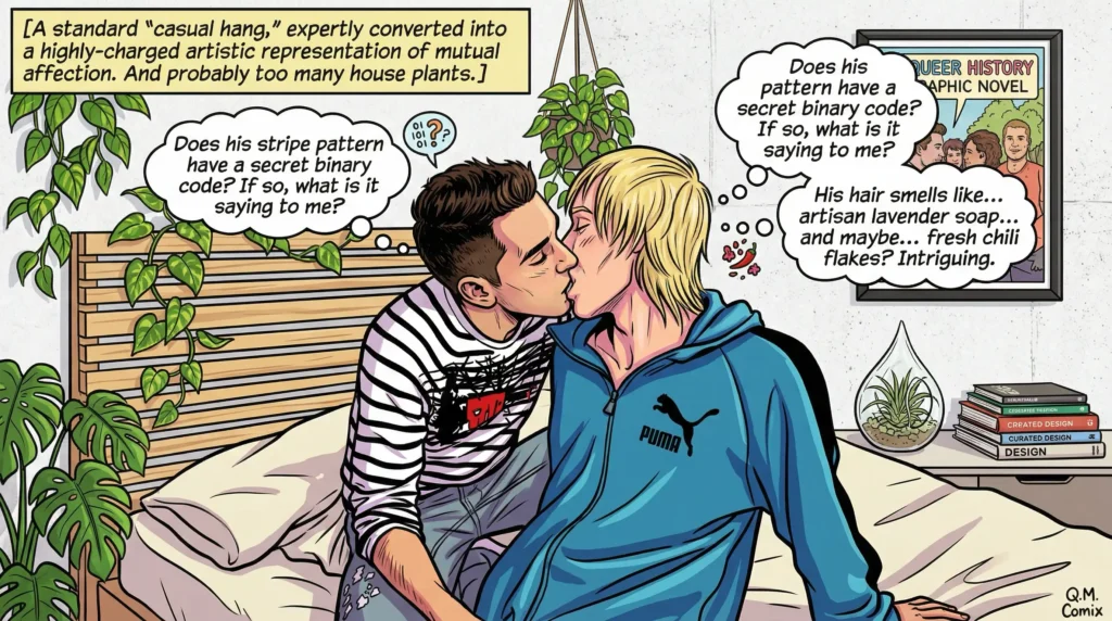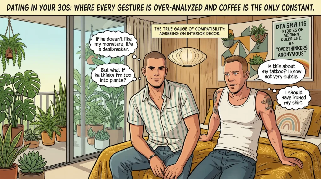 Eli had spent the whole morning rearranging his apartment, pretending it was about “fresh energy” when really it was about impressing the guy coming over for coffee. The monstera on the balcony had been rotated exactly forty‑five degrees—dramatic, but necessary.