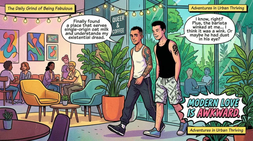 The first time Milo dragged Jasper into Queer & Coffee, he swore it was for the single‑origin oat‑milk latte. Jasper didn’t buy it for a second. Milo had been talking about the place for weeks—specifically about the barista who “might have winked, or maybe had dust in his eye.”